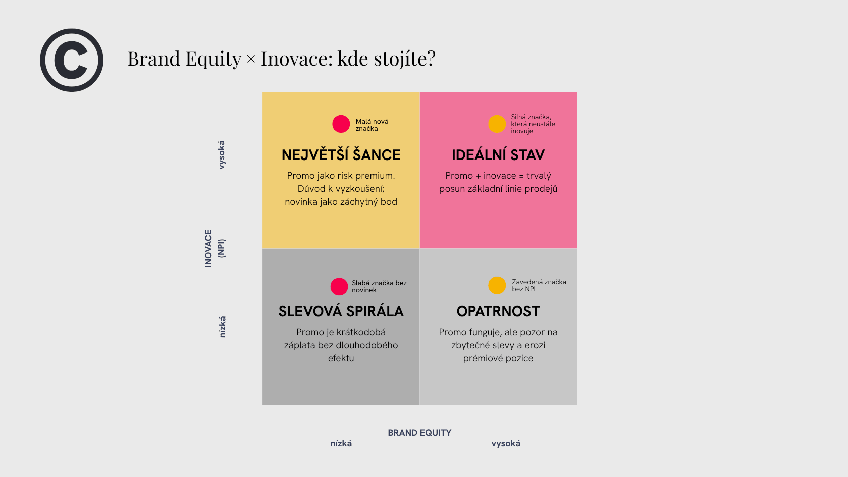 - Budujte Brand Equity jako štít. Silná značka je jediný způsob, jak v roce 2026 zvýšit ceny bez drastického propadu prodejů. A zároveň zesiluje efekt všeho ostatního (promo, novinek, komunikace).